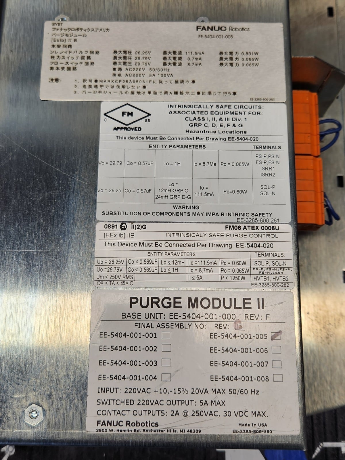 Fanuc EE-5404-001-000 Rev C Purge Module